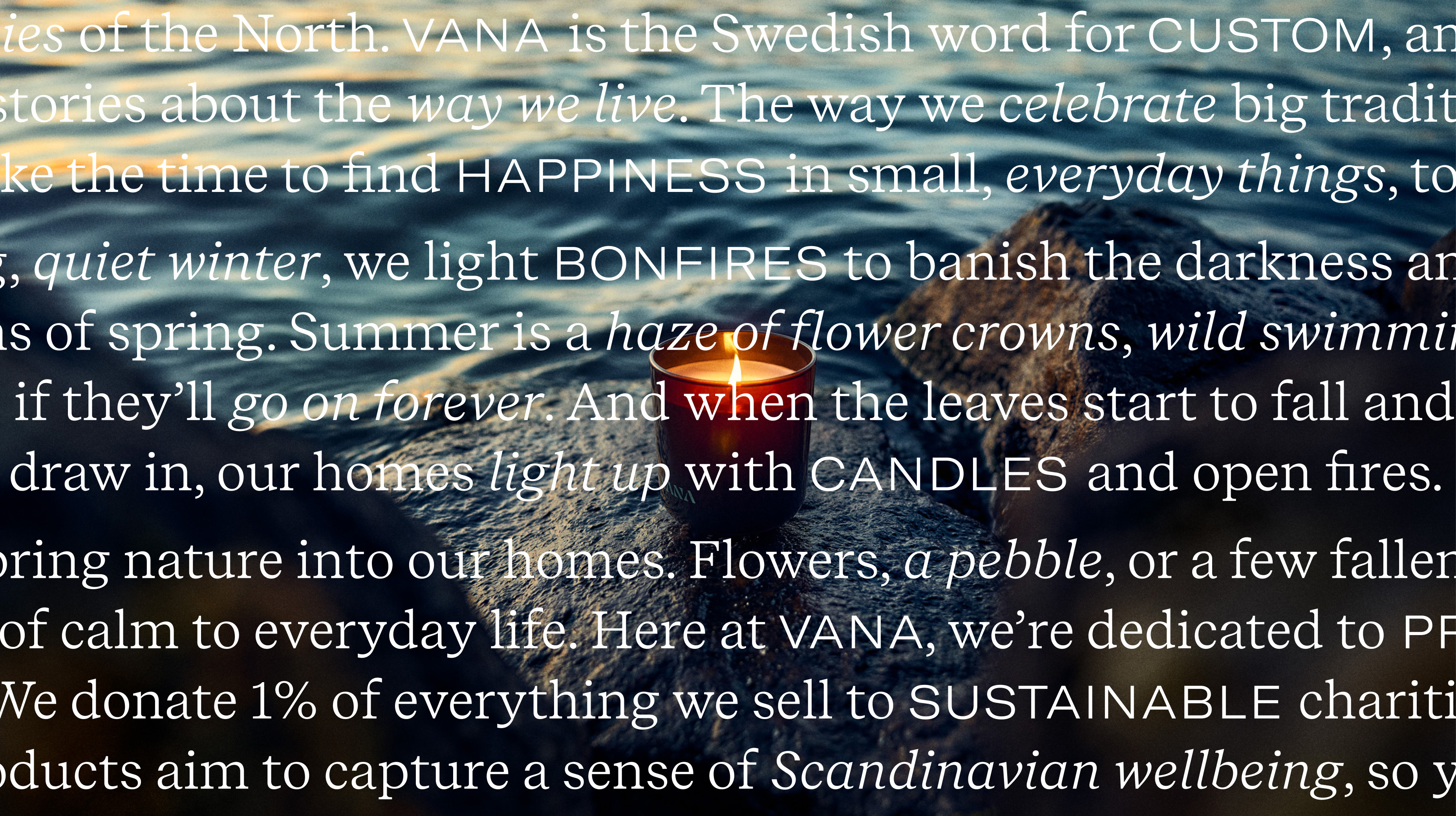 Vana is a candle and skin care brand based in Taiwan, founded by the swede Robin Johansson with the idea to bring the story about Scandinavian habits to the Asian market and inspire people to relax and unwind.